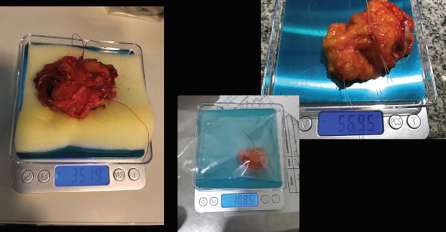 Al momento de resección de la lesión, se le pide al cirujano que controle la actividad metabólica de la pieza quirúrgica, que debe ser máxima, y en el lecho quirúrgico, donde debería ser nula (►Fig. 8). Se procede luego a pesar la pieza quirúrgica en una balanza digital (►Fig. 9).