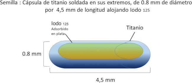 Semilla con Iodo 125 (adaptado de Braquibac- Laboratory. Bacon).