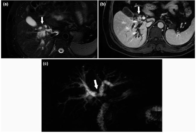 9 Vanderveen KA, Hussain HK. Magnetic resonance imaging of cholangiocarcinoma. Cancer Imaging 2004;4(02):104-115