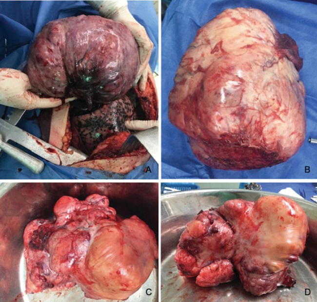 Methods.: Retrospectively, we collected four cases of patients with giant SFTP operated in our institution. The sociodemographic, clinical, imaging, macroscopic, and microscopic characteristics of each case are described.