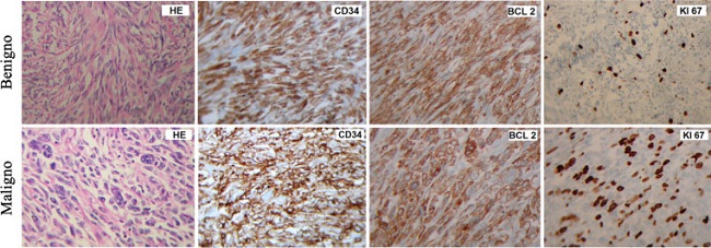 Un incremento en el índice Ki-67 y la expresión de p53 puede corresponder a un tumor desdiferenciado. La presencia de actividad mitótica, celularidad elevada o necrosis son marcadores de malignidad y pueden predecir un comportamiento tumoral agresivo.17
