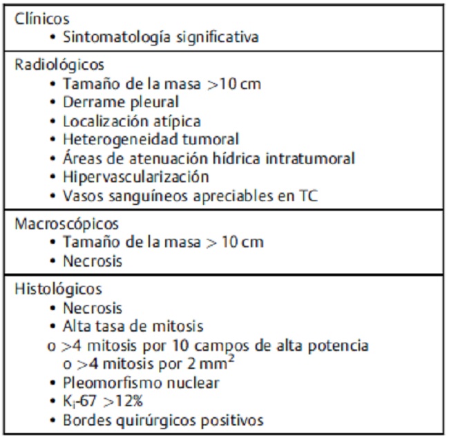 Usualmente, el TFSP es benigno y tiene un buen pronóstico.7) Sin embargo, se ha documentado que entre el 10-20% de los tumores son de naturaleza maligna y pueden presentar recaída local, metástasis y aumento de la mortalidad.2,7,15) Se han reportado diversos factores predictores de malignidad: clínicos, radiológicos y patológicos (►Tabla 2).
