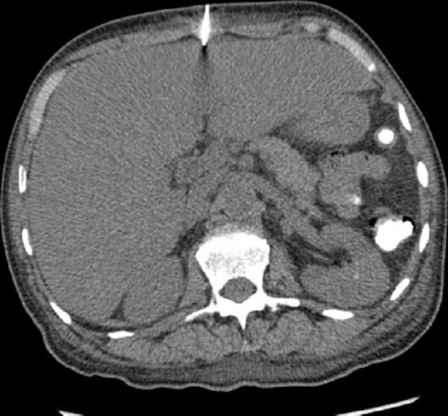 Las manifestaciones clínicas de la enfermedad son inespecíficas e incluyen: fatiga, malestar general, masa abdominal palpable, hepatomegalia, ictericia y dolor abdominal. En los exámenes de laboratorio se puede identificar alteración en las pruebas hepáticas, anemia y trombocitopenia.1) En algunos casos se ha descrito un síndrome anémico ferropénico, anemia hemolítica microangiopática y trombocitopenia leve, similar a la encontrada en nuestro paciente. Debido al riesgo de hemorragia, aunque el diagnóstico definitivo es anatomopatológico, no se suele realizar dicha comprobación y el diagnóstico se determina con estudios imagenológicos. La ruptura espontánea del tumor con hemorragia intra-abdominal masiva se ha observado frecuentemente.1,4,5,9