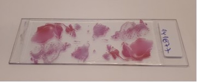 Las muestras fueron analizadas por el anatomopatólogo mediante técnica de tinción simple con hematoxilina-eosina para realizar el diagnóstico de patología benigna o maligna (Fig. 4). Se informó el tipo de patología y se clasificaron las lesiones malignas determinando también el grado de infiltración.
