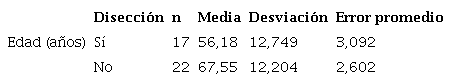 La media de edad en los pacientes con DA fue de 56 años, mientras que para aquellos sin DA fue de 67 años (Tabla 1).