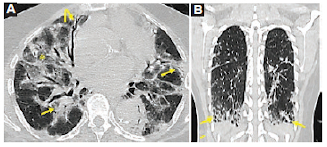 Palabras clave: Neumonía en organización criptogénica, Enfermedades pulmonares intersticiales, Tomografía computada.