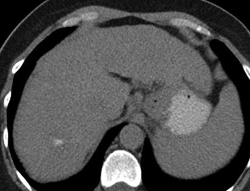 La grasa microscópica se ha encontrado en hasta el 14% de los HCC en RM como áreas con caída de señal en secuencias ponderadas en T1 GRE fuera de fase. Este hallazgo se ha incorporado a la versión más reciente de LI-RADS® como un signo secundario de HCC12,13.