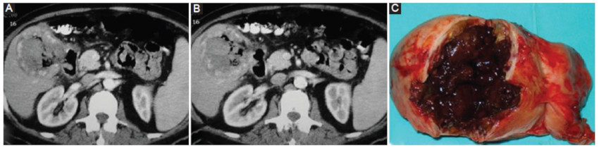 Cuando la ruptura es intrahepática, el hematoma queda contenido por la cápsula de Gleason, con la subsiguiente organización y transformación quística.