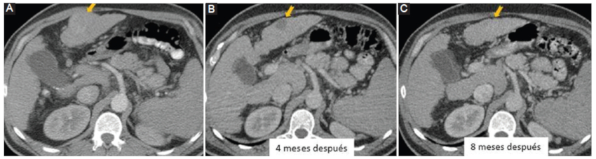 En las diferentes modalidades de imágenes puede observarse desaparición del tumor o una disminución de su tamaño de un control al otro (Fig. 9).