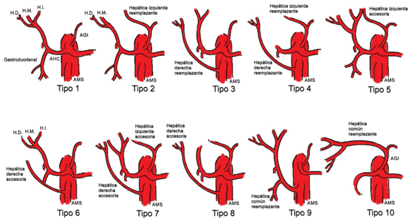 Clasificación anatómica de las variantes de la arteria hepática según Michels