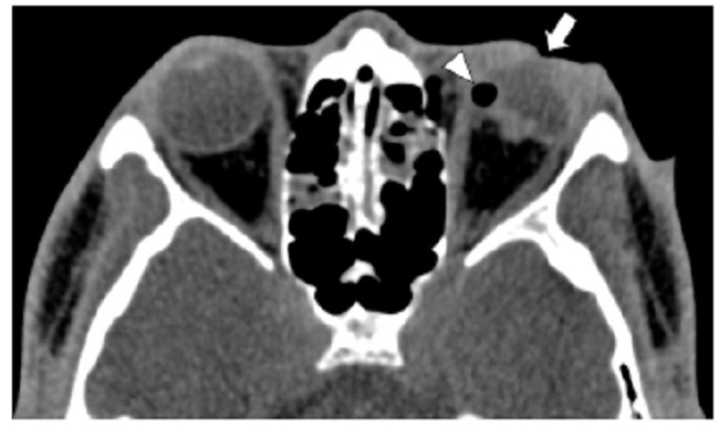 Los hallazgos tomográficos de lesión abierta del globo ocular incluyen el cambio en el contorno del ojo, pérdida obvia de volumen (llanta desinflada), la discontinuidad escleral, y el aire y los cuerpos extraños intraoculares1,6 (Figs. 2, 3, 10, 11, 12). La profundidad de la cámara anterior puede aumentar y asociarse a desplazamiento posterior del cristalino por rotura en el segmento posterior1.