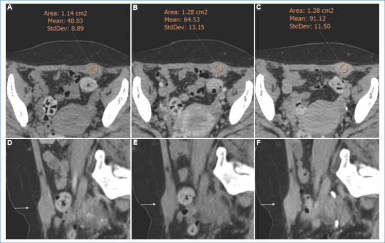 El rol fundamental de las imágenes es la valoración prequirúrgica y la determinación de la extensión regional de la lesión, siendo la ecografía transvaginal y la resonancia magnética (RM) los métodos utilizados para el estudio de la endometriosis profunda como la afectación de los espacios subperitoneales1. La apariencia de la endometriosis cicatrizal en la pared abdominal es variable y dependerá de la fase del ciclo menstrual, la cronicidad y la cantidad de elementos estromales o glandulares. Por RM, la formación suele ser hiperintensa y heterogénea en T1 y T2, como resultado de hemorragia subaguda en las criptas endometriales, aunque esto puede variar1. Por tomografía computada (TC) se observa como una formación nodular de densidad de partes blandas en relación a la cicatriz de cesárea, puede ser levemente hiperdensa con respecto al músculo y realza moderadamente con el contraste endovenoso.