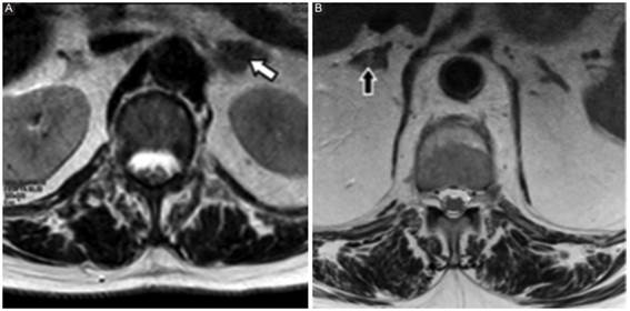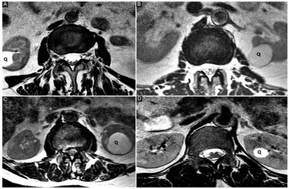 Habitualmente pueden encontrarse hallazgos extrarraquídeos, normales o patológicos, que no deben ser omitidos en el informe; estos hallazgos, conocidos como incidentalomas1)(2)(3)(4)(5, muchas veces pueden ser los causantes de la clínica que derivó en la realización de la RM, o ser completamente asintomáticos.
