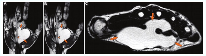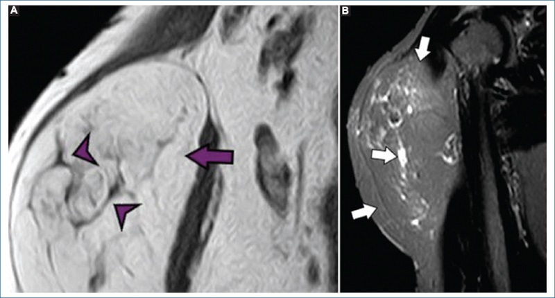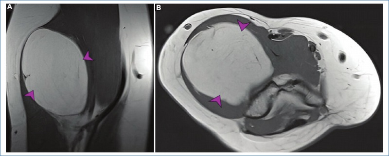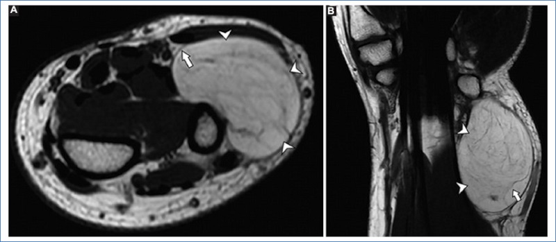 La resonancia magnética (RM) es la técnica de imagen de elección para evaluar los tumores de partes blandas, ya que proporciona una mejor resolución tisular en tejidos blandos. Es importante evaluar las lesiones en al menos dos planos y adquirir secuencias iniciales de eco de espín potenciadas en T1 y T23. Las secuencias con supresión de grasa o STIR mejoran la caracterización de los componentes de las lesiones, mientras que las secuencias de eco de gradiente ayudan a detectar la presencia de hemosiderina. El campo de visión (FOV) debe adaptarse al tamaño de la lesión. Cuando se observan dos tumores separados por una distancia significativa dentro del cuerpo, se puede obtener una exploración FOV grande para establecer que las lesiones realmente están separadas. Luego de esta exploración inicial, cada una de las lesiones debe evaluarse completamente por separado, con bobinas y FOV adecuados en cada sitio4.