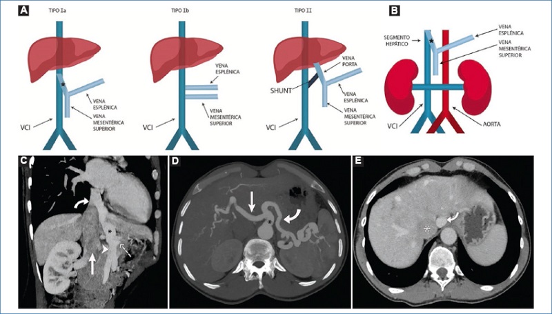 La malformación de Abernethy, también conocida como shunt portosistémico extrahepático congénito (SPEC), es una condición rara en donde la sangre portal drena parcial o completamente a la circulación sistémica a través de una comunicación anormal. Embriológicamente, la vena porta (VP) se desarrolla a partir de la vena vitelina derecha e izquierda y de anastomosis intervitelinas alrededor del duodeno. La regresión selectiva de los canales anastomóticos forma la VP. Se piensa que estos shunts extrahepáticos se deben a una involución excesiva de la vena vitelina o a la falla de la vena vitelina para establecer anastomosis con los sinusoides hepáticos o venas suprahepáticas3. Se clasifica en dos categorías20: