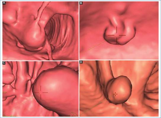 Los pliegues rectales del tercio inferior, medio y superior, o válvulas de Houston, pueden simular pólipos en las imágenes de TC axiales. Sin embargo, son fácilmente descartadas mediante el uso de imágenes endoluminales y de planos coronales.