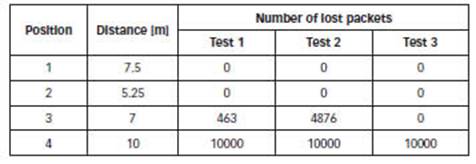Table 1 shows the results of this test, i.e. the number of packets lost at each of the positions.