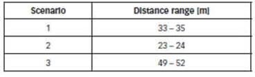 For the outdoor test, the dynamics were different. The computer was placed at the entrance of a building and the system was configured to sample at 1 kHz. The desktop application was configured in such a way that once it detected that no data was being received, it would stop the process and display an alert that the connection had been lost. In the first scenario, there were not many obstacles between the PC and the electronic device. In the second scenario, there was no direct visibility due to the presence of bushes. In the third scenario, there was direct visibility between the electronic device and the PC. Table 2 shows the distance ranges obtained in each of the scenarios.
