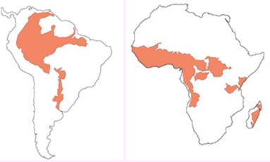 An approximate geographical distribution in South America and on the African Continent can be seen in figure 1.