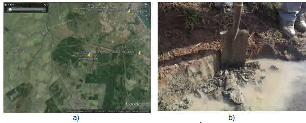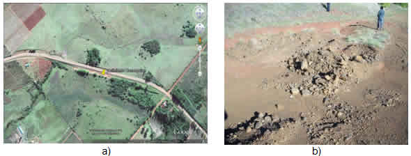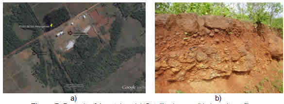 The Barrio Santiago of Garupa site is located at coordinates 27° 28' 16" S, 55° 50'32.88" W, which was nor dimensioned since it is located in a populated area. However, samples were taken for the tests in order to compare them with other deposits. At the time of sampling, the soil vegetation had recently been removed for the start of construction. In May 2021 the area is covered with houses, as can be seen by comparing Figures 12 a and 12 b. The deposit, due to the movement of soils carried out for the constructions, exposed the plinthite to weathering for longer time than that in the Road N° 105 deposit.
