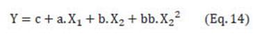 Out of the dependent variables analyzed here, only the behavior of concentration (and recovery) can be described by the polynomial Eq. (8), proposed by the software Statgraphics Plus 5.1 by using the standardized Pareto chart dropping coefficients without statistical significance. The final equation that predicts concentrations (and recovery) is: