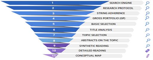 The bibliographic analysis performed in specialized scientific publications or studies under construction is presented through a time interval from 2011 to 2021. The research methodology adopted in this work involved the following steps: