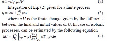 where ΔU is the finite change given by the difference between the final and initial values of U. In case of isobaric processes, can be estimated by the following equation