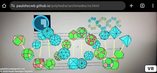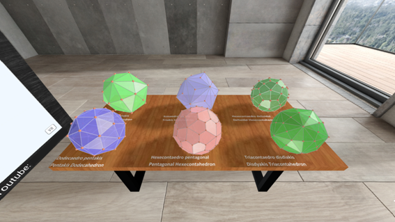 On the page programmed in AR, students view and manipulate the polyhedra from different points of view and access the pages programmed in VR to manipulate the representations of solids with mobile devices, computers or they can even immerse themselves in the scene using VR goggles.