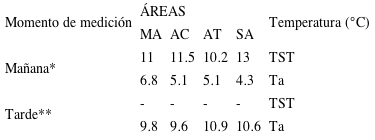 *Mañana: TST: 10:48 h, hora local; Ta: 7:00 h, hora local. ** Tarde: TST: sin registro; Ta: 15:30 h, hora local.