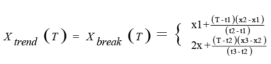 Donde Xbreak (T) es el punto de ruptura poblacional de la tendencia Xtrend(T) .