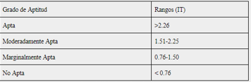 Posteriormente, se calculó un índice de adaptabilidad climática total (ecuación 2) según los lineamientos del MARNR (1989) para determinar el grado de aptitud (Tabla V). Para el maíz, la respuesta del rendimiento diferirá en gran medida dependiendo de la etapa en la que ocurra el estrés hídrico. Normalmente, las etapas de floración y formación del rendimiento son sensibles al estrés, mientras que el estrés que ocurre durante las fases de maduración tiene un impacto limitado, al igual que en la fase vegetativa, siempre que el cultivo pueda recuperarse del estrés en las etapas subsiguientes.