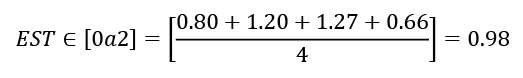 EST ∈ [0 a 2]; calificación promedio total del equipamiento y servicios turísticos.