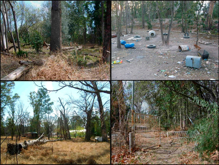 El parque presenta signos de deterioro avanzado, que pueden apreciarse en sus árboles, equipamiento e infraestructura y basurales (figura 8). Además, se han asentado en él ocupantes ilegales y construcciones clandestinas, y no está permitido el ingreso de la comunidad al sitio. Con lo cual surgen interrogantes: ¿dónde está el significado y valor del patrimonio? El Parque Ortega, ¿es patrimonio para quién/es?
