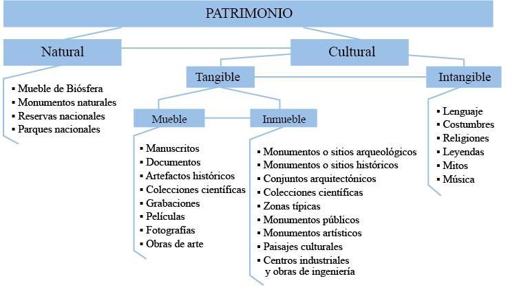 En los últimos años se ha producido una evolución de las categorías del patrimonio; incorporando nuevos elementos y sitios con características disímiles. A grandes rasgos, la tradicional clasificación que establece la UNESCO distingue entre patrimonio natural y patrimonio cultural, con subcategorías que, cabe destacar, han sido ampliadas durante las últimas décadas (Fig. 1). Este organismo presenta una clasificación estricta del patrimonio, cuyas categorías se presentan como compartimentos estancos y descontextualizadas. Es decir, sin especificar en qué marco espacial y/o bajo qué situación sociocultural aparecen. En este sentido, cabe preguntarse: ¿patrimonio para quién/es? ¿quién patrimonializa y lo gestiona? ¿qué rol ocupa la sociedad civil? ¿el patrimonio es representativo del grupo social?