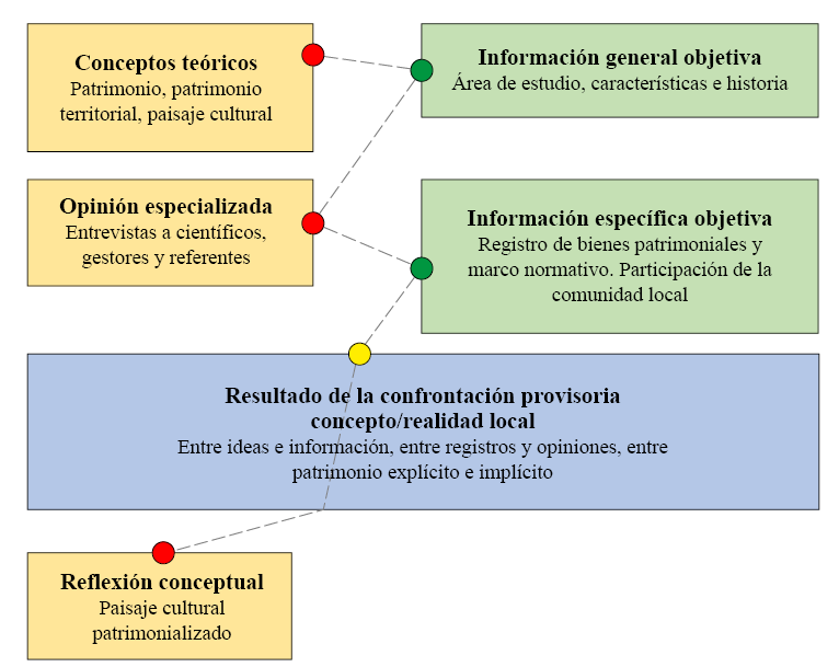 La idea deja constancia de que todo se plasma en el territorio y, por lo tanto, se confiere valor a la totalidad. Se consuma una valoración de su dimensión histórico-cultural mucho más profunda que de la artística o de la potencialidad natural, como atributos ponderados en la versión dominante del patrimonio según sus categorías específicas. Con lo cual adquieren especial importancia los vínculos (muchas veces conflictivos) que se establecen entre los actores sociales (principalmente los pobladores locales) y los elementos y actividades; todos ellos insertos y/o desplegados en un espacio antropizado, el territorio.
