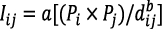 . Resulta evidente que si P aumenta o d disminuye (por ejemplo, cuando d se mide en tiempo), I será mayor (Buzai y Baxendale, 2012). Las constantes a y b ajustan el modelo a valores empíricos del movimiento entre las dos ciudades.