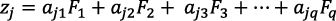 , donde aj1F1 es la carga factorial de la variable j en el Factor 1 y se obtienen tantos factores como variables (V), aunque eligiendo los factores (F) con mayor poder explicativo se llega a una cantidad de F< V. El factor subyacente será nombrado en base a los resultados de combinación del conjunto de variables significativas en las saturaciones factoriales.