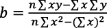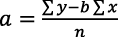 [ 16 ]Donde a es la ordenada al origen, es decir el punto por donde la recta cruza el eje y cuando x=0 y b representa la pendiente de la recta, es decir, el incremento de y ante los cambios de valores en x. Este cálculo se utiliza en el análisis de regresión cuando se intentan predecir los valores de una variable dependiente (y) respecto de los valores conocidos de la variable independiente (x).