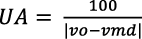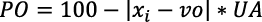 [ 18 ]Donde vmd es el valor más distante al valor objetivo. El puntaje 100 es el valor objetivo y cada xi muestra la distancia que la aparta del objetivo. Entonces, combinado con variables de beneficio siempre el valor 100 y 0 representan las mejores y peores situaciones respectivamente.