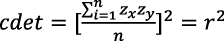[ 30 ]Finalmente puede calcularse el coeficiente de determinación (cdet) que representa el porcentaje de explicación que una variable tiene sobre otra, en general cuanto es explicada la variable dependiente y respecto de la variable independiente o explicativa x de acuerdo a la ecuación [7] como resultado de la recta de regresión.