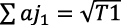 Se suman los valores del vector fila t●1. Al resultado lo llamaremos T1, luego se calcula