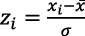[ 7 ]Donde,zies el puntaje estándar para cada unidad espaciali,xi es cada uno de los datos individuales,