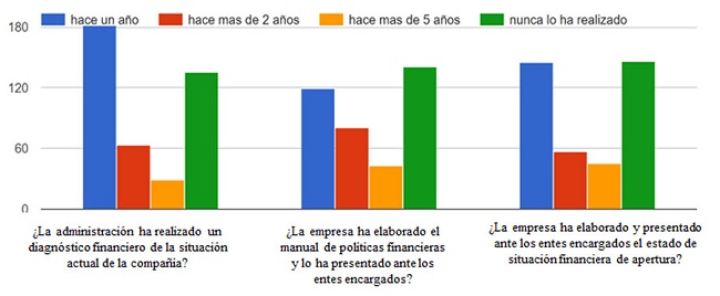 Al aplicar el instrumento de medición se evidencia la baja gestión organizativa en temas contables y financieros que presentan los responsables del proceso de implementación de las NIIF para pymes en las organizaciones, situación que puede ser por falta de conocimiento, capacitación, ayuda de expertos, direccionamiento estratégico, diseño de políticas y desconocimiento en aplicación de sanciones por incumplimiento.