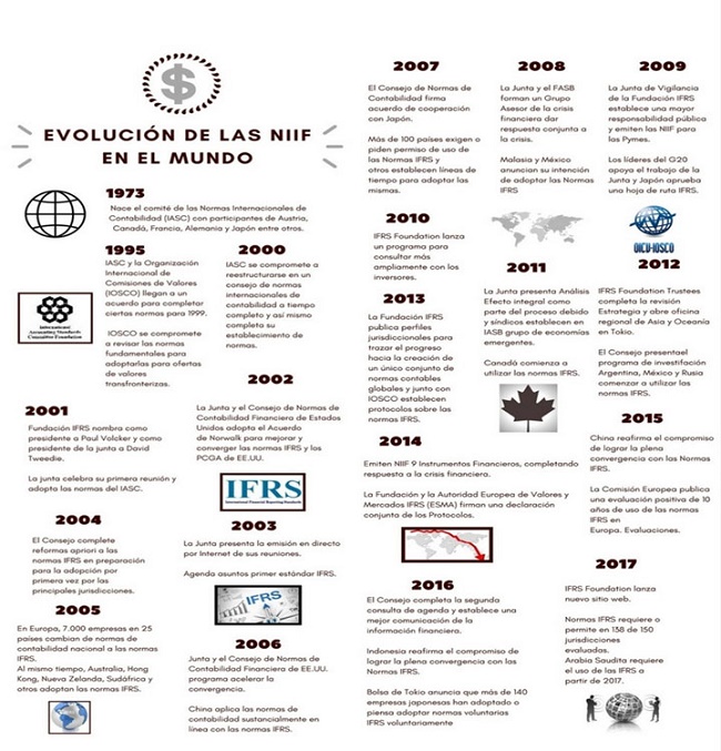 En Colombia el Gobierno Nacional, a través del Congreso de la República y en cabeza de los Ministerios de Industria, Comercio y Turismo, de Hacienda y Crédito Público, promulgó la Ley 1314 de 2009 y ha reglamentado esta ley con unos decretos desde el año 2012 hasta el 2016, con el fin de garantizar la implementación de las Normas Internacionales de Información Financiera.