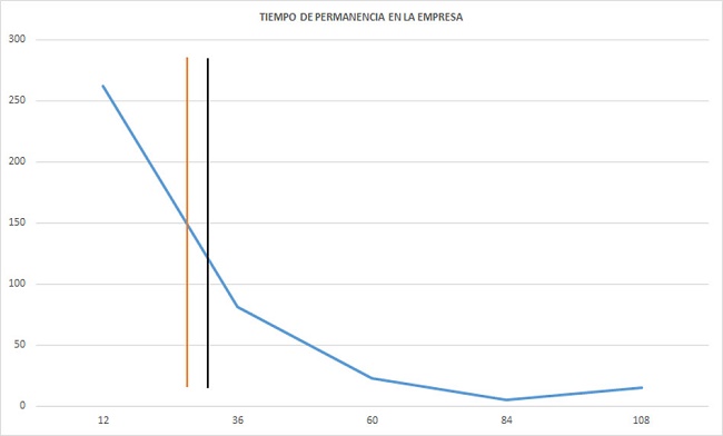 Otro aspecto que se consideró importante fue conocer el tiempo de vinculación laboral del empleado en la pyme, buscando que ellos tuvieran conocimiento sobre el proceso de implementación de la norma; en consecuencia, el tiempo de vinculación laboral de los encuestados en la empresa es en promedio de 23,5 meses, el 50% no supera los 18,4 meses de vinculación. Ver figura 3.