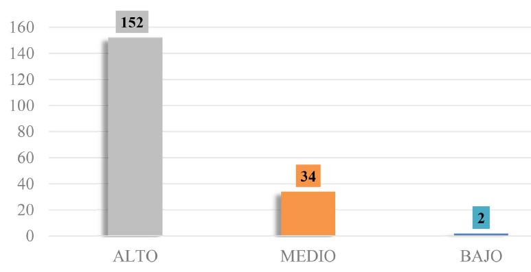 En la figura 2 se observa que 152 comerciantes tienen un nivel de cumplimiento alto, 34 aceptan y cumplen con el pago de los impuestos y dos tienen un nivel bajo, es decir, solo realizan el pago del impuesto sin tener conocimiento de ellos ni ser conscientes del deber que tienen al ejercer una actividad económica. Se especifica que de los 190 comerciantes encuestados, dos no cumplen con ninguno de los criterios establecidos debido a que uno solamente es consciente, es decir, acepta el pago del impuesto, y el otro conoce y cumple mas no es consciente del deber de tributar. De esta manera se determina que el 80,9% de los comerciantes de la zona centro, al tener un nivel de cumplimiento alto, demuestran un compromiso en los temas tributarios.