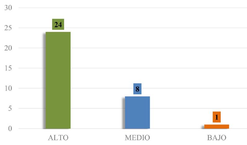 Se puede apreciar en la figura 3, que un comerciante encuestado tiene un nivel de cumplimiento bajo, ocho están en la categoría media y 24 tienen un nivel de cumplimiento alto, es decir, que conocen el significado de los impuestos analizados, asimilan que son responsables de tributar y cumplen con el pago de estas obligaciones. Es necesario resaltar que 33 comerciantes tienen un nivel de cumplimiento, puesto que son propietarios del inmueble y por ende son responsables del pago del impuesto predial.