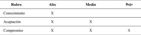 Los criterios para determinar el nivel de cumplimiento de las obligaciones tributarias se establecen con base en la clasificación de los componentes de la cultura tributaria, donde es necesario que haya una presentación oportuna de las declaraciones de impuestos, su pago oportuno y la presentación en la unidad tributaria (Niknamian, 2017). Por consiguiente, el nivel bajo se conforma con pagar la obligación, para el nivel medio se requiere tener un compromiso y asimilar la obligación, es decir, ser consciente del deber de tributar y para tener un nivel alto se demanda tener un conocimiento general de los impuestos, aceptar y ejecutar el pago de los mismos. La información se puede apreciar en la tabla 7.