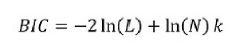 Para comparar modelos de efectos mixtos se puede usar el Criterio de Información de Akaike (AIC) o el Criterio de Información Bayesiano (BIC) ( Navarrete, 2015). Sean k la cantidad de parámetros, L la verosimilitud del modelo y N la cantidad de observaciones, las expresiones para calcular estas medidas de bondad de ajuste son las ecuaciones ( 6) y ( 7).