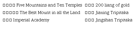 To sum up, Zong Jing’s Jingshan Collection is an interpretation of the history of Jingshan Temple from a renowned monk’s perspective and acknowledges his own merits. Moreover, it is also a testament to the monk’s wish that Jingshan Temple can restore its status as “The Best Mount in all the Land”, behind which is Zongjing’s yearning for the vigorous development of Jingshan Temple in the early Ming Dynasty and for enhancing its influence and status.